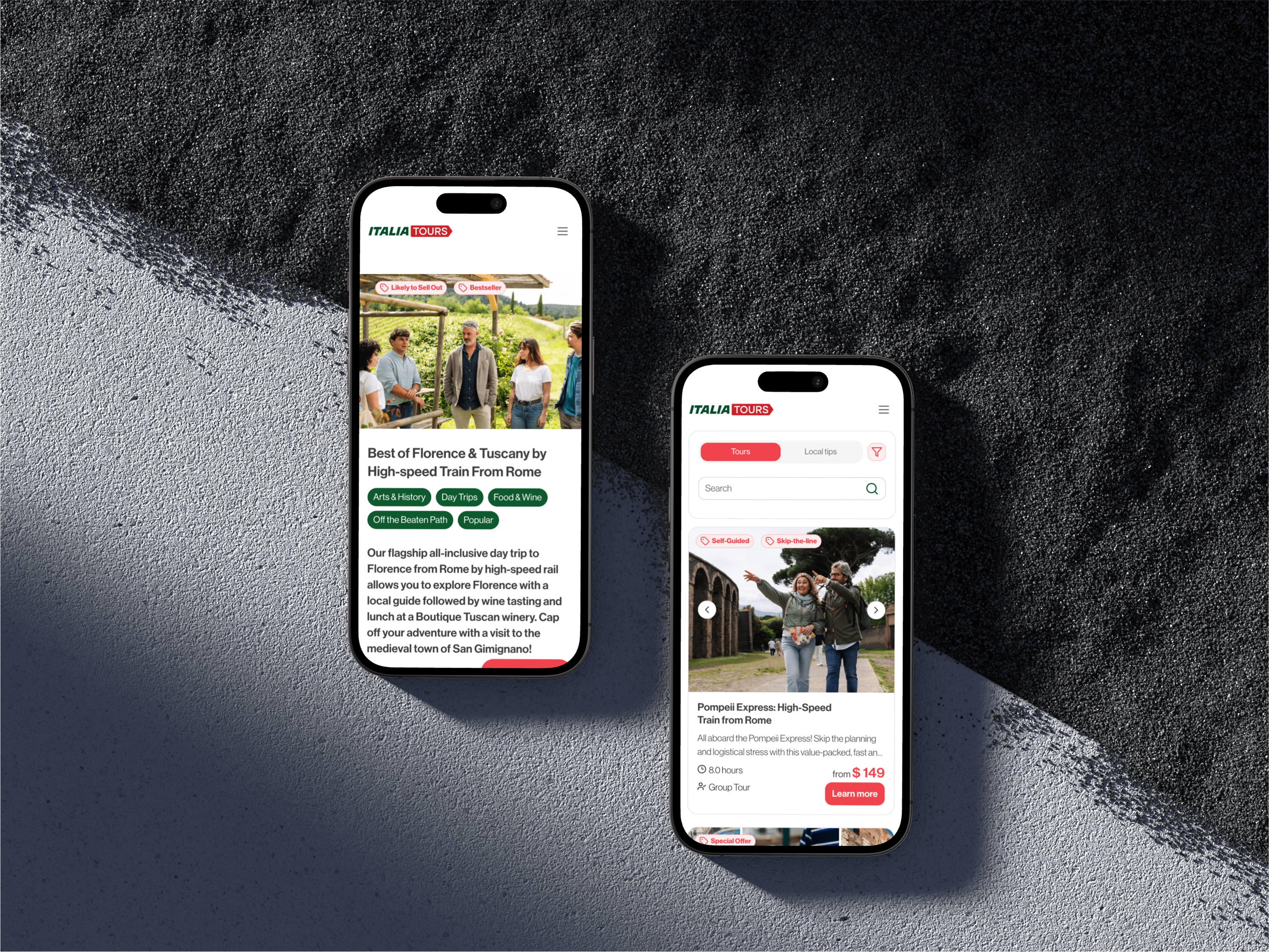 Abbiamo lavorato per creare un'interfaccia più moderna e intuitiva, semplificando la ricerca e la prenotazione dei tour. Particolare attenzione è stata data all'ottimizzazione per i dispositivi mobili, considerando che gran parte del traffico proveniva da smartphone. Il progetto ha incluso anche un'integrazione più fluida con gli altri servizi del gruppo ItaliaPass.